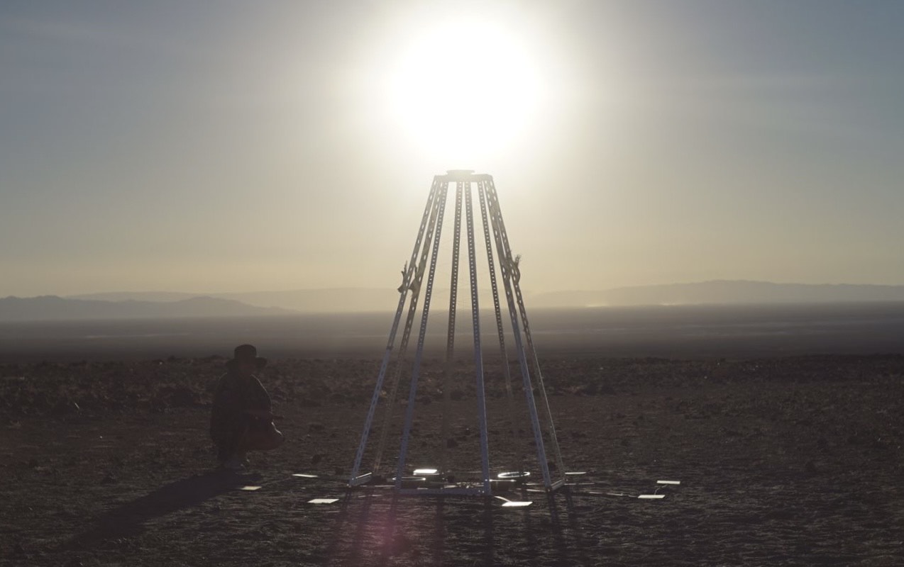 La pieza se complementa con Líneas de poder (Chena), un video que revisita las alineaciones del Pukará de Chena y reinterpreta el sistema de ceques incaicos, superponiéndolos a un paisaje contemporáneo atravesado por tendidos eléctricos e infraestructuras industriales. El trabajo combina registros de campo, navegación satelital y diálogos con sabedores locales para entrelazar tecnologías ancestrales y contemporáneas.